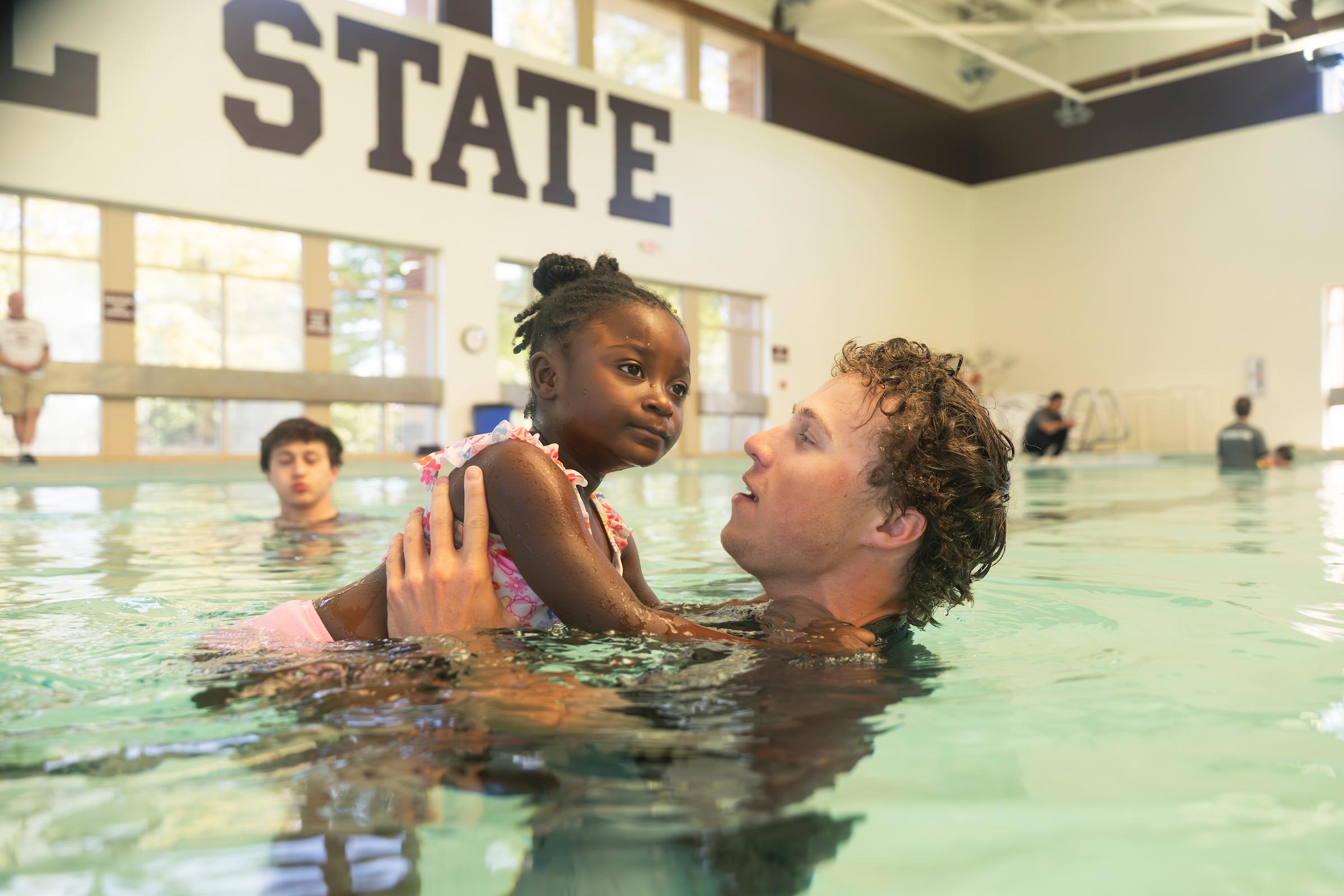 The Department of Kinesiology's MSU Adapted Swim Camp teaches swimming and water safety to children and adults with special needs. The camp is held in MSU's Sanderson Center with Dr. Gregg Twietmeyer serving as the camp director. Instruction is led by Certified Adapted Swim instructors.